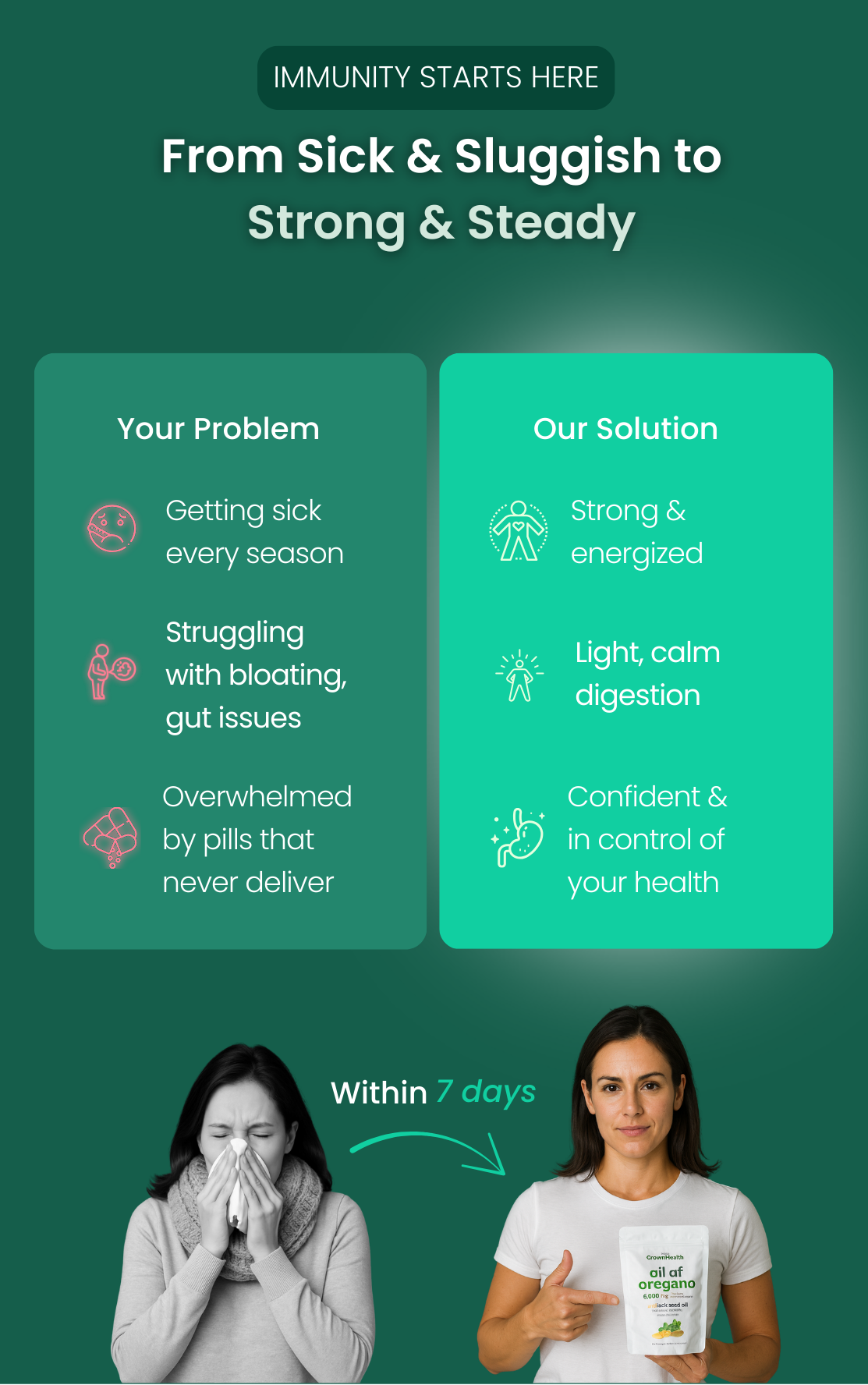 We combine proven botanicals like oregano oil and black seed oil in their most effective forms. Every formula is third-party tested, ultra-clean, and dosed for real results—not just label appeal.
