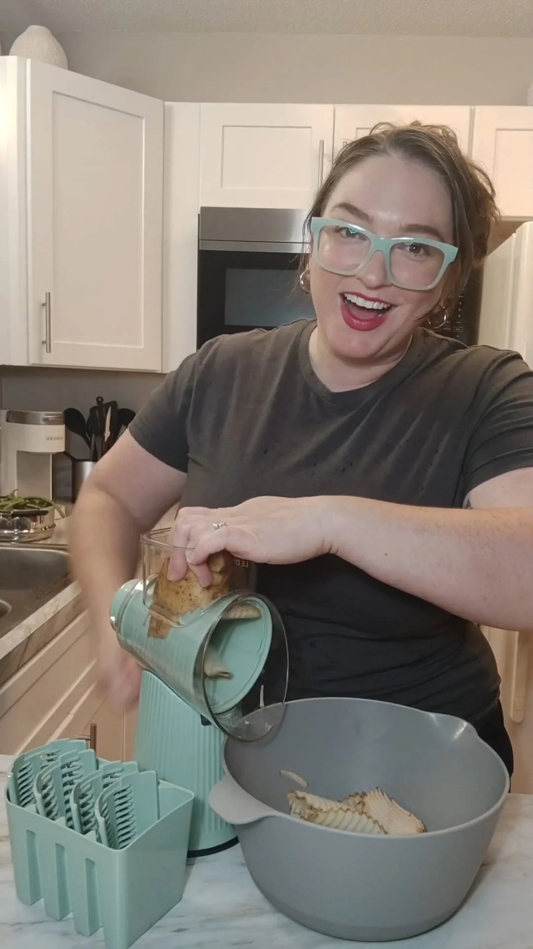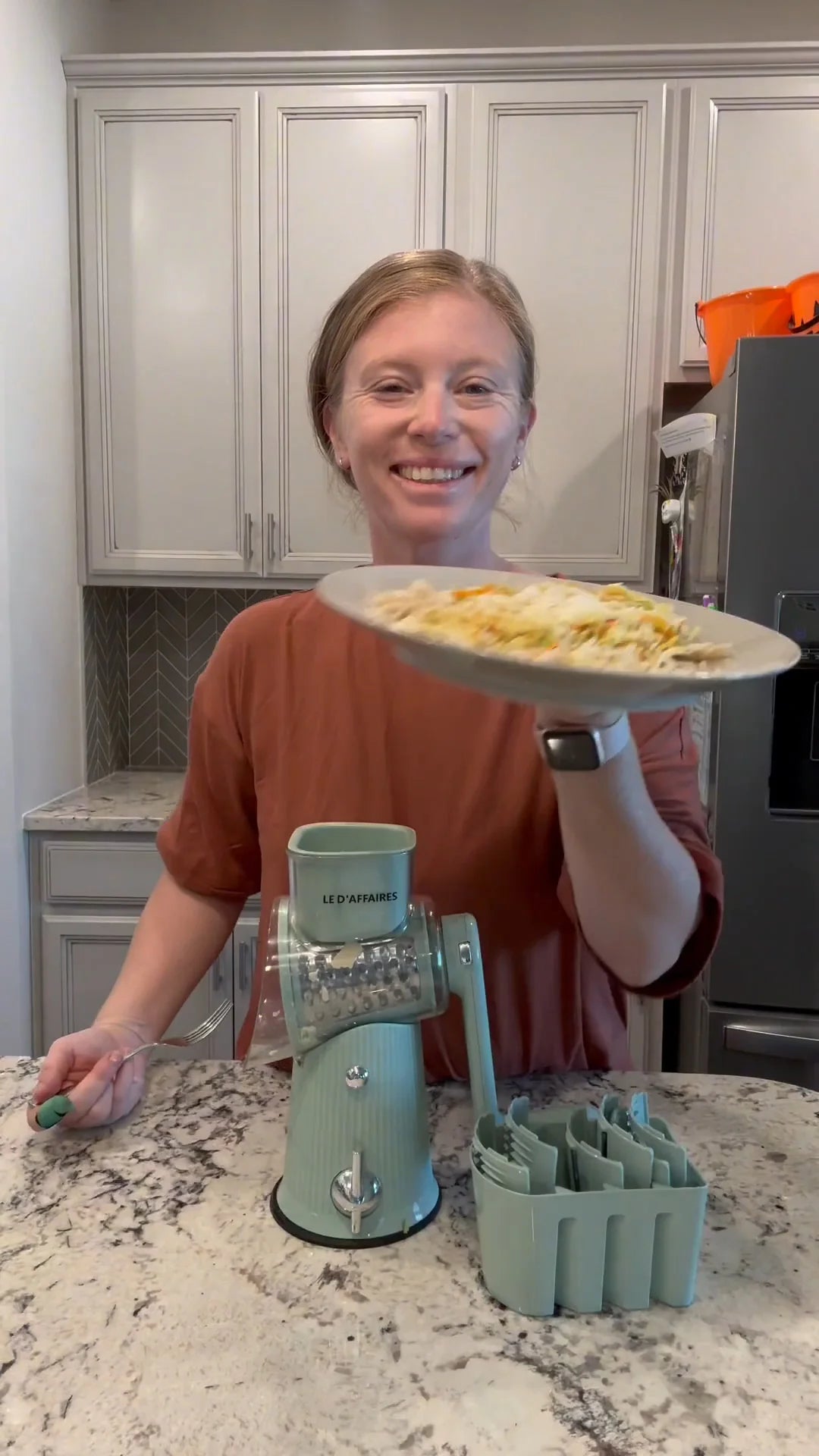 • "I love the variety of blades! From thin slices to chunky gratings, this grater does it all. It’s incredibly easy to use, and I no longer need multiple tools to prep different foods."